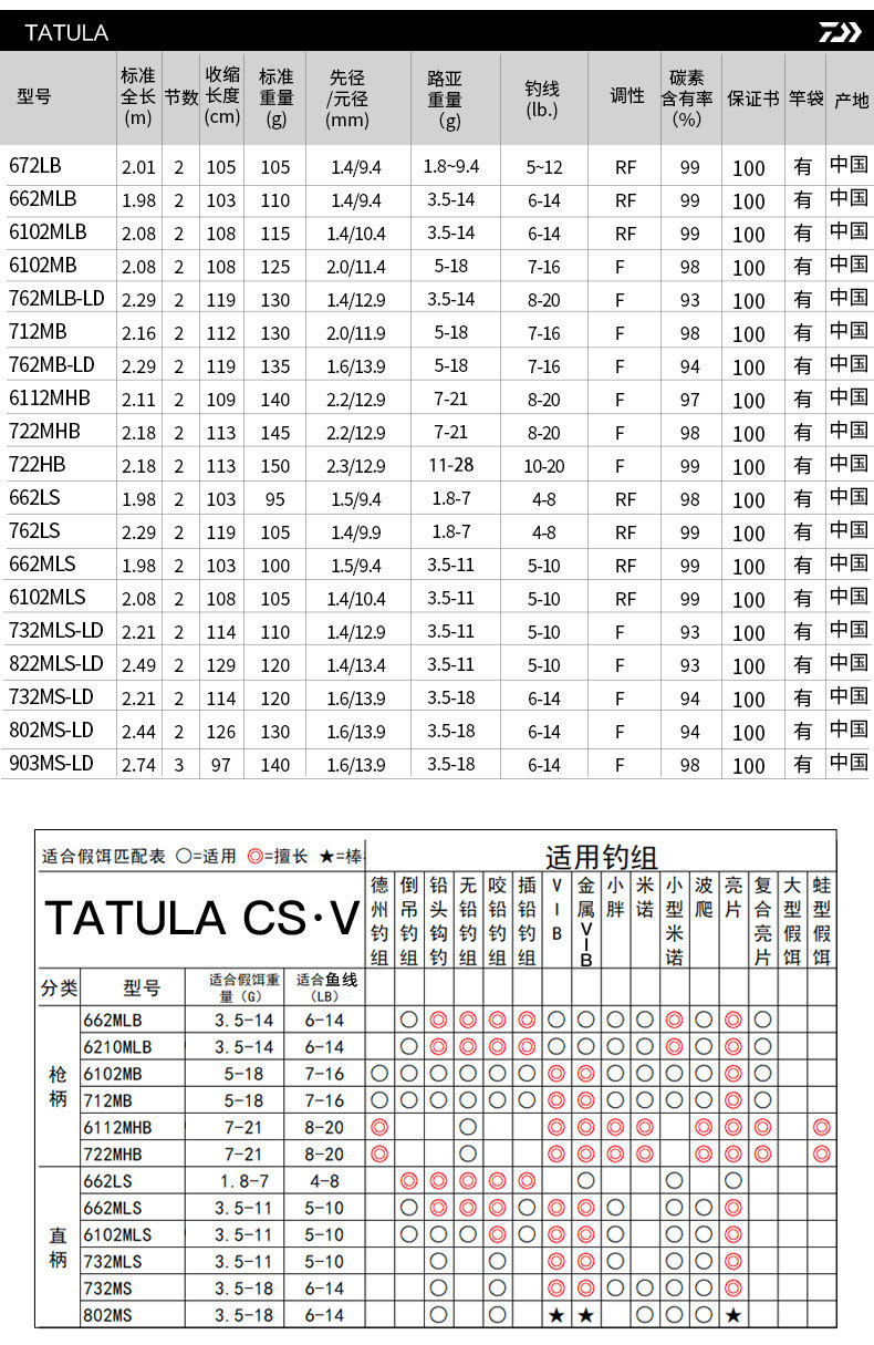 662LS (1 98 m soft tuning handle) 662MLS (1 98 m soft tuning grip) 6102MLS (2 08 m soft tuning grip) 762LS(2