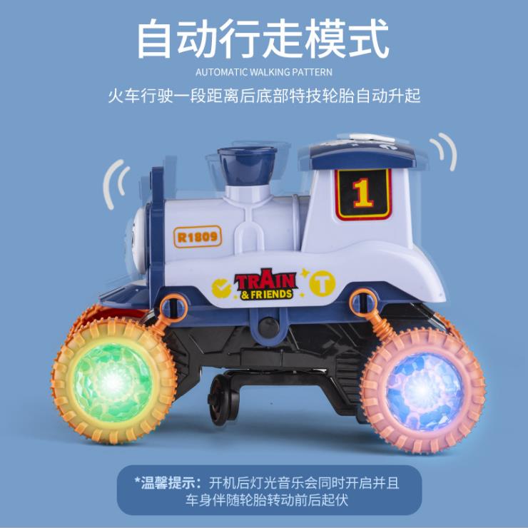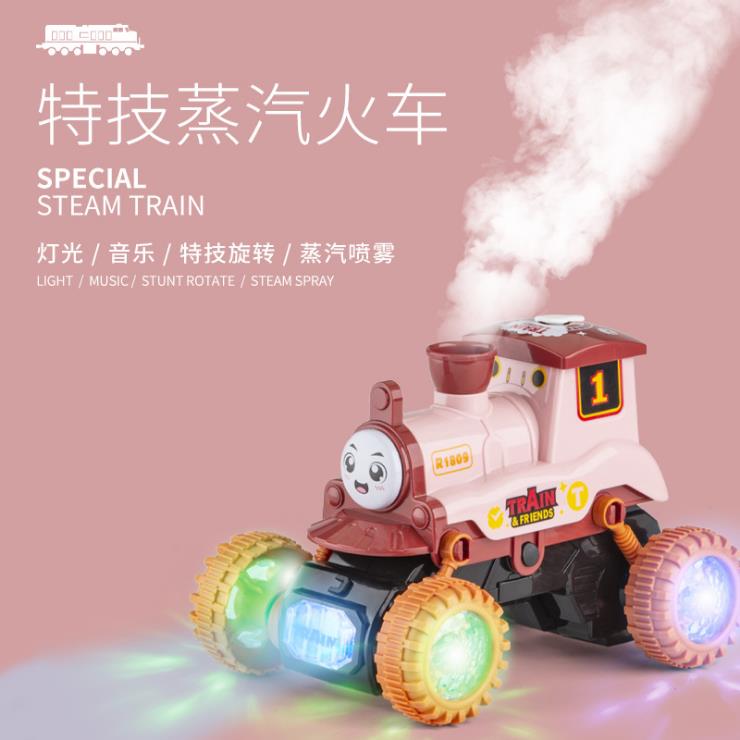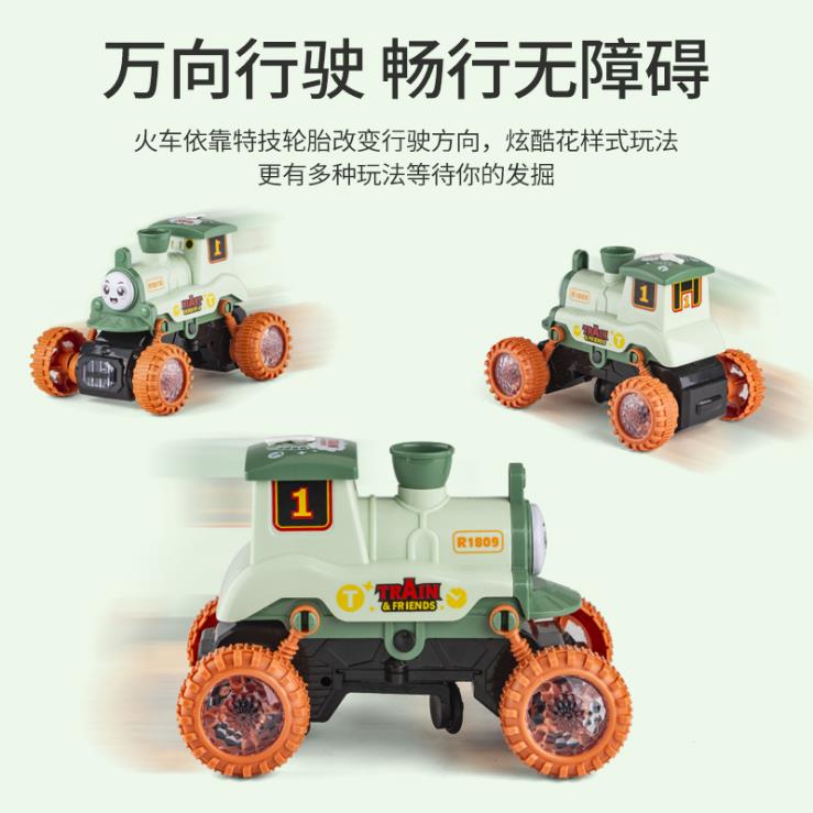 Stunt steam train smoke children's electric rollover car with sound and movement singing and dancing toy boys and girls