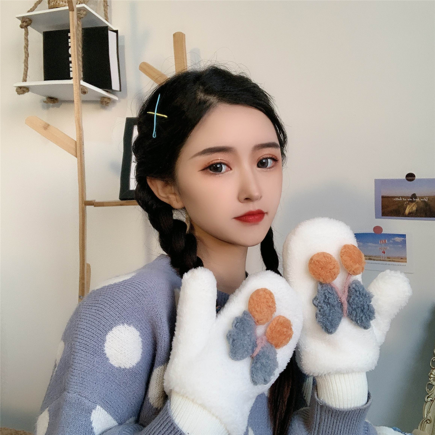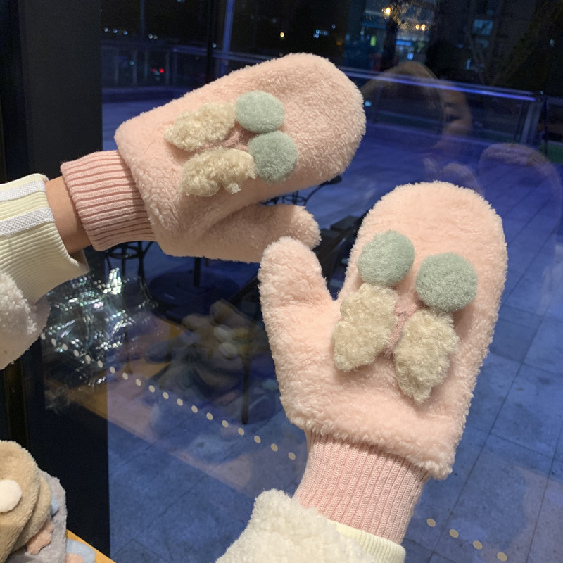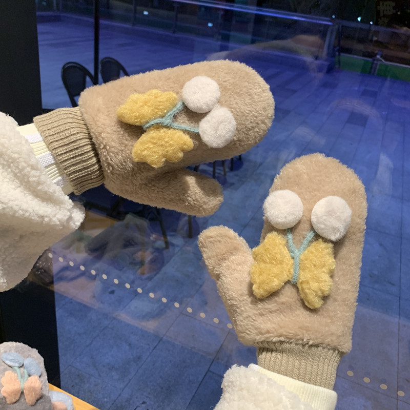 Cartoon Gloves Women Winter Students Plus Suede Thickening Warm Plush Cute Cute Cute butterflies all refer to the thick Korean version of the day