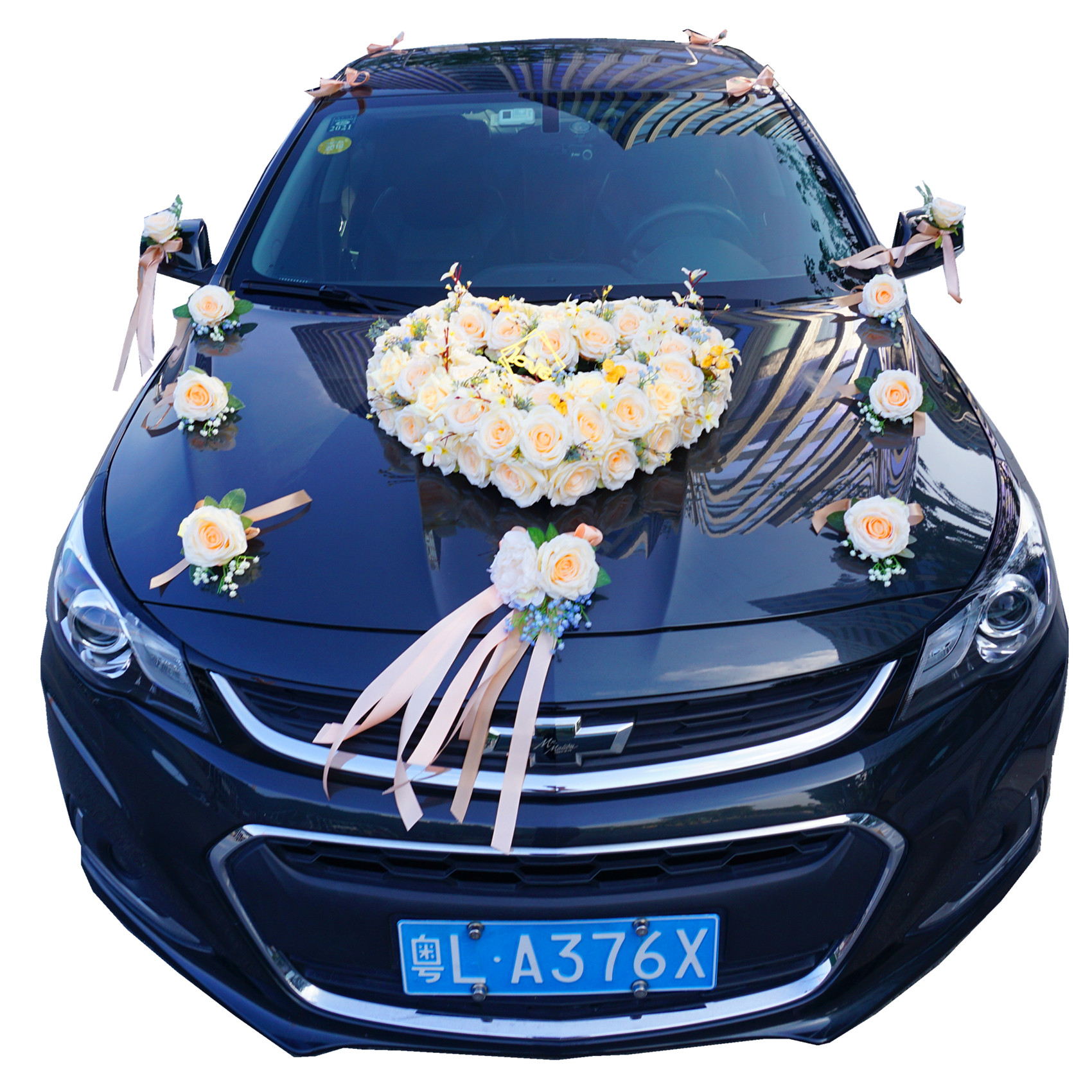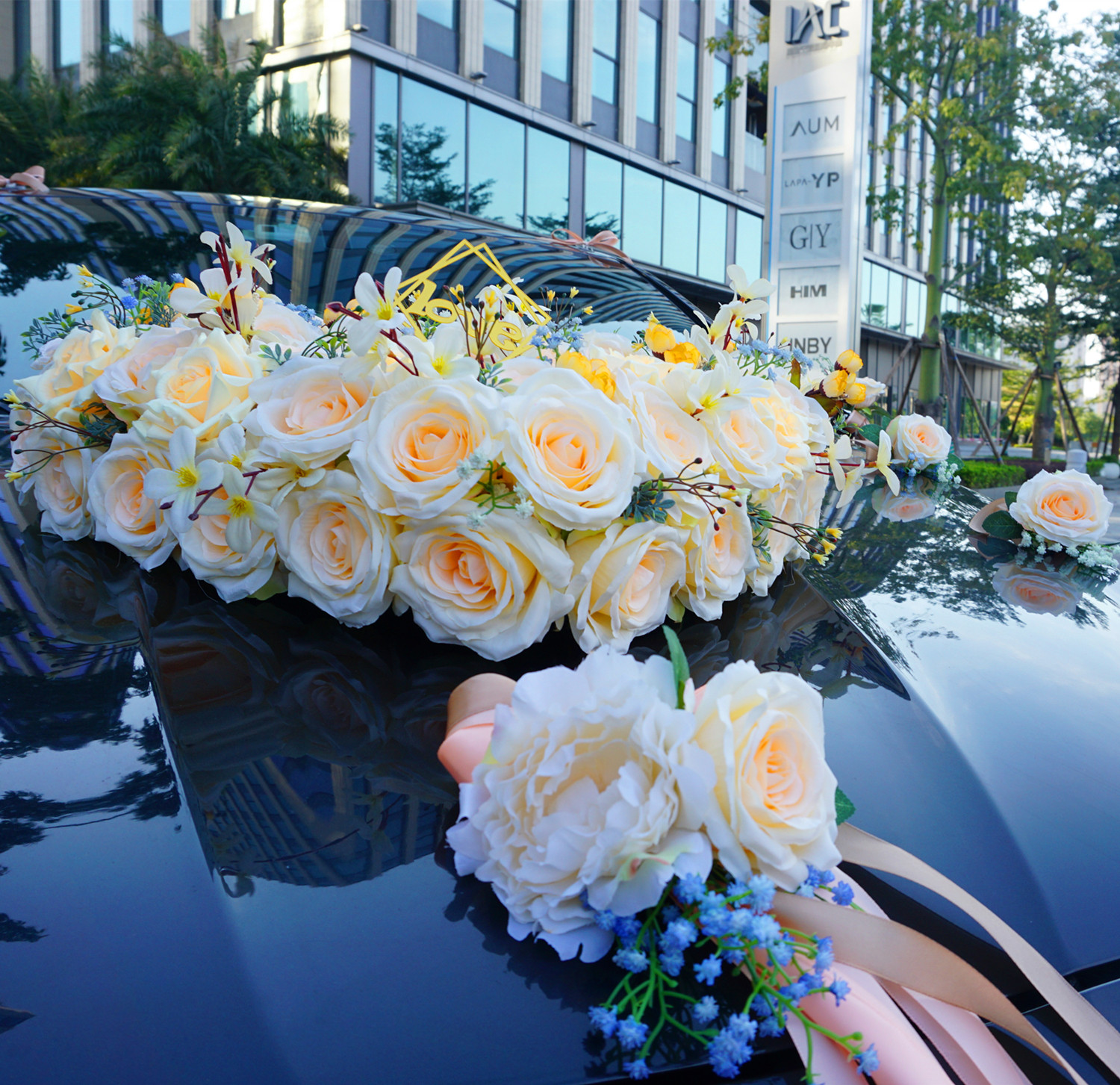 Korean-style Sen series main wedding car decoration front flower set creative wedding simulation head car pull flower supplies full set
