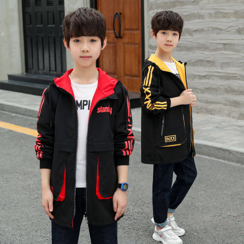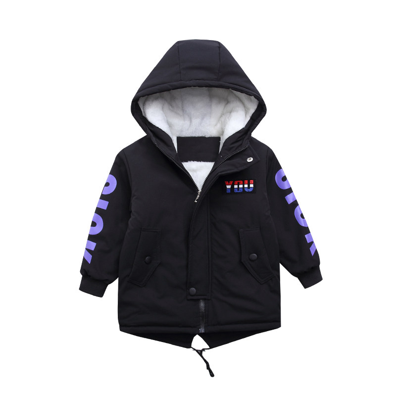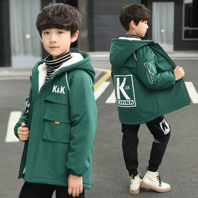 Boys jacket autumn and winter plus velvet 2021 new children's middle and big children's medium and long version thickened cotton clothes foreign style windbreaker tide boy