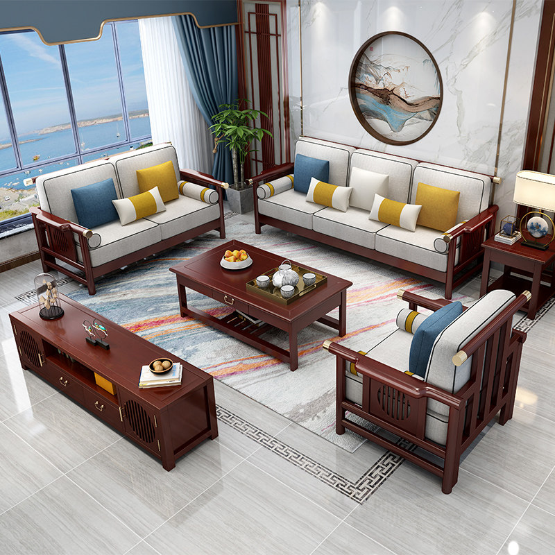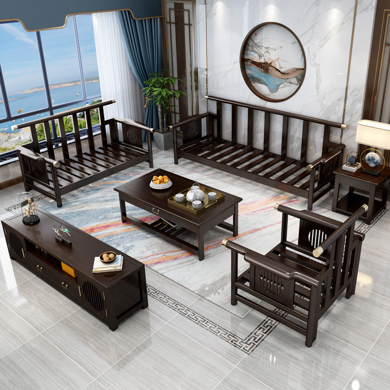 Solid Wood Hotel Sofa Combo New Chinese Style Chinese Style Chinese Style Black Sandalwood Living Room Chinese Furniture Wood Gabu Wood Sofa
