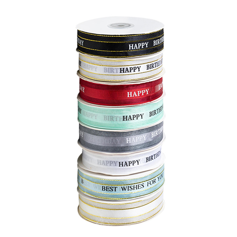Green mesh yarn ribbon (happy birthday) grey mesh yarn ribbon (happy birthday) beige mesh yarn ribbon (happy b)