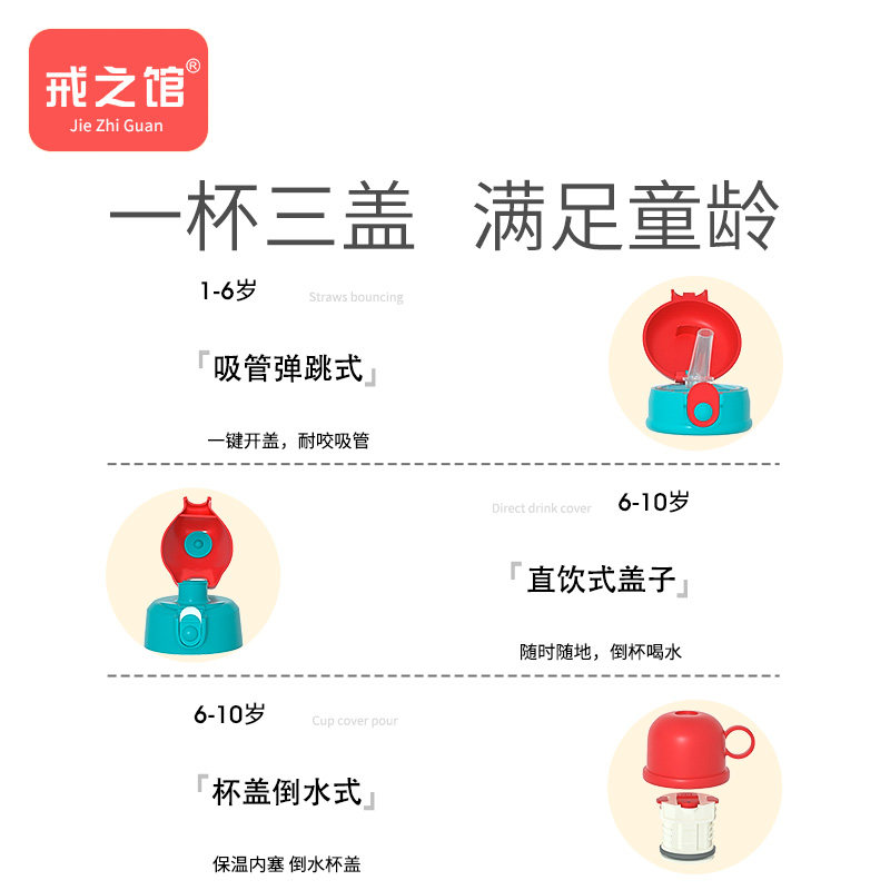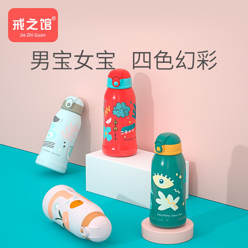 Withdrawal Museum Children's insulated cup 316 Baby school Drinking cup with straw water cup Anti-fall kindergarten Elementary school pupil kettle