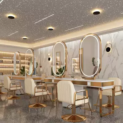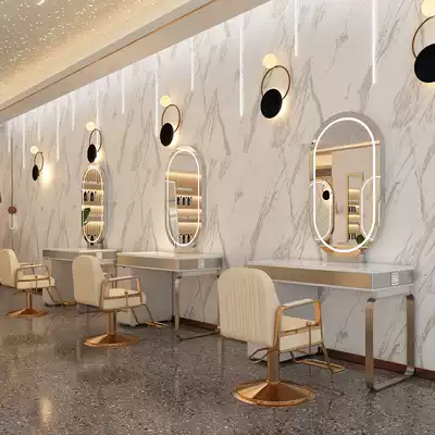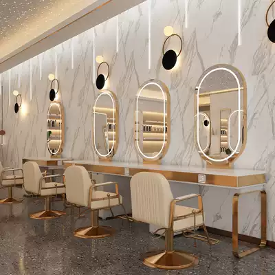 Stainless steel marble hot dyeing table Net red mirror table hair salon mirror hair cabinet one-piece hair salon special trendy style