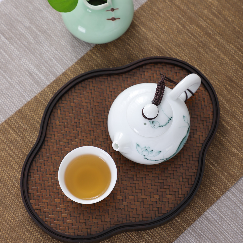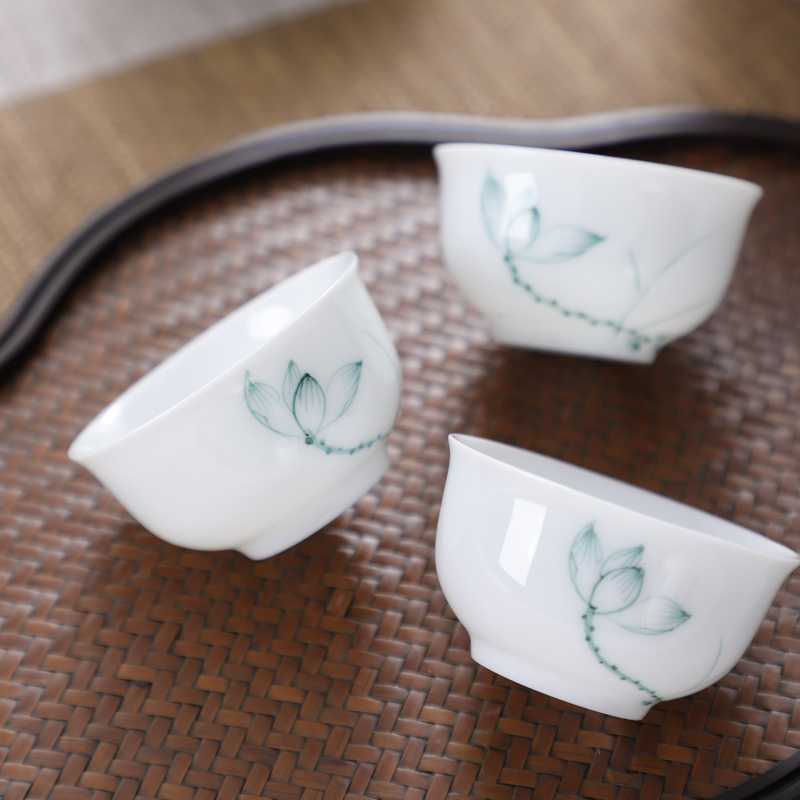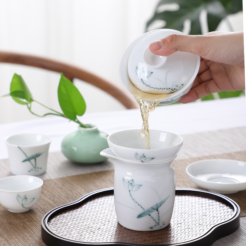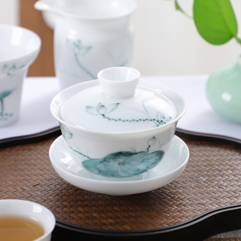 Hand-painted small kung fu tea set set Chaoshan cover bowl Xishi pot tea cup complete set of home living room jade porcelain lotus