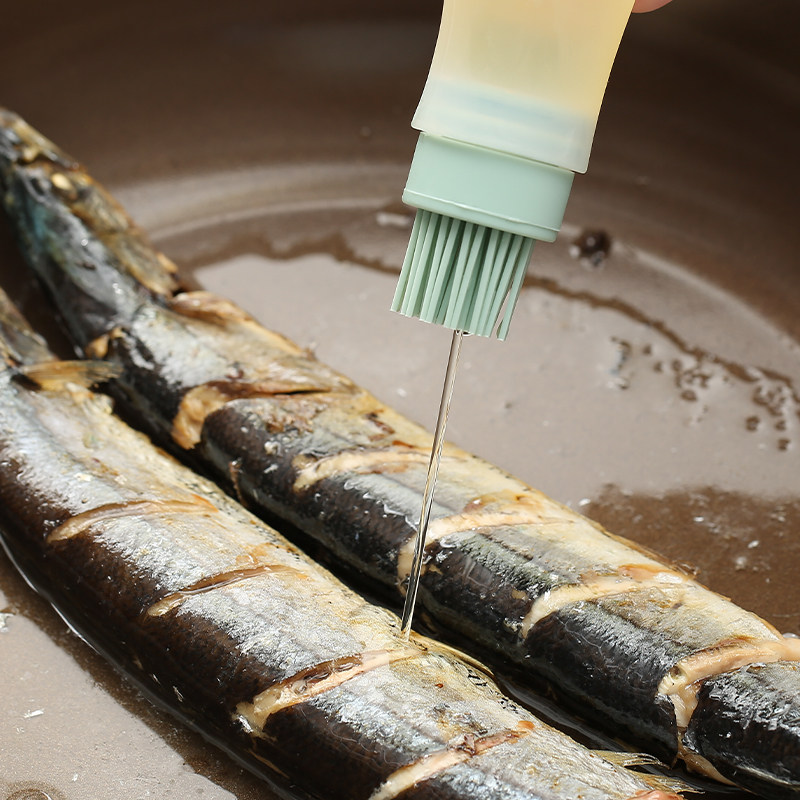 Japan silicone oil brush with bottle high temperature barbecue brush Household pancake baking oil brush Glass oil bottle integrated brush