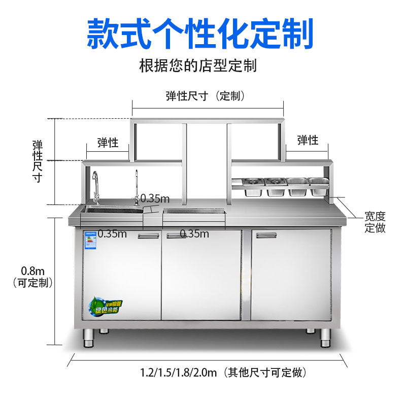 Operation table commercial milk tea shop water bar refrigerated freezer freezer full set of factory custom stainless steel workbench