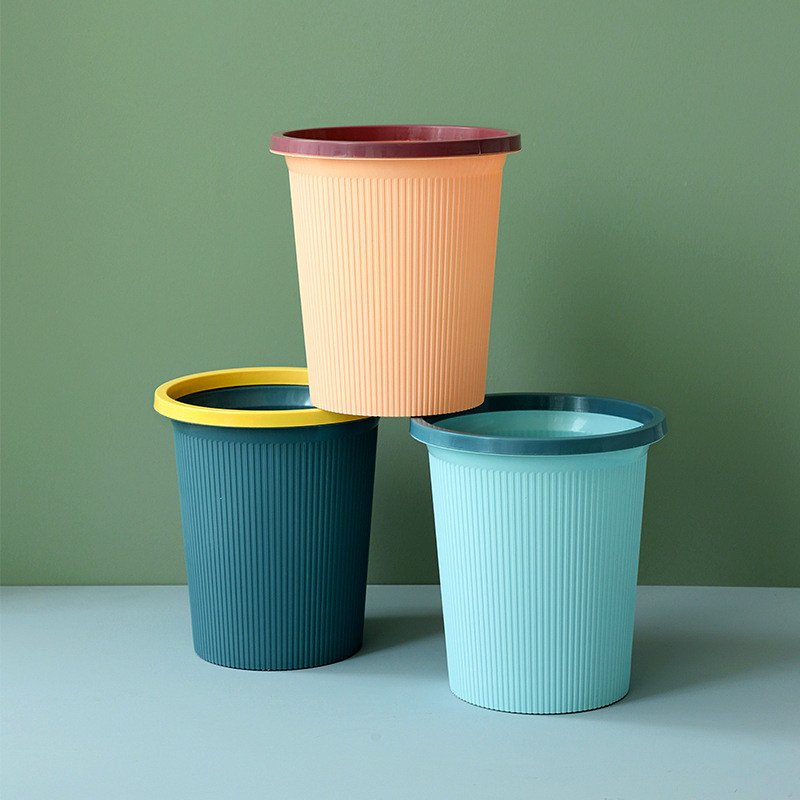 Simple household living room kitchen waste trash can without cover with pressure ring drum-shaped paper basket dormitory powder room garbage classification