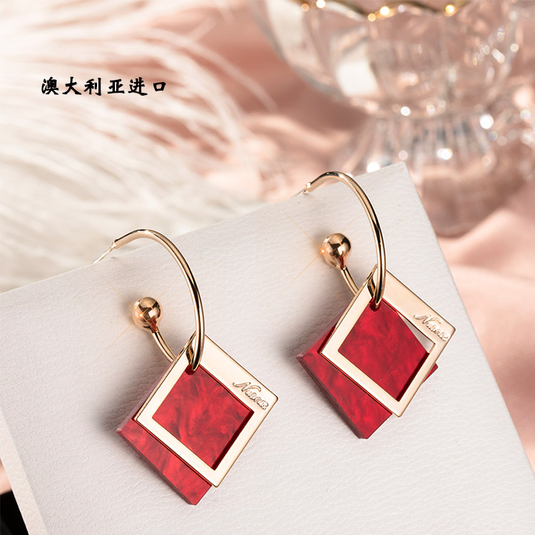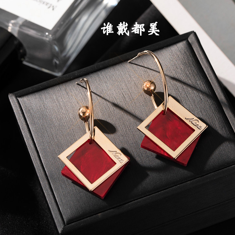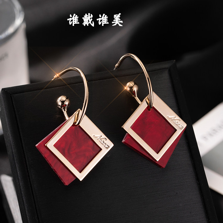Korean tide high-grade earrings atmospheric versatile cold wind geometric diamond-shaped face thin earrings female temperament long version