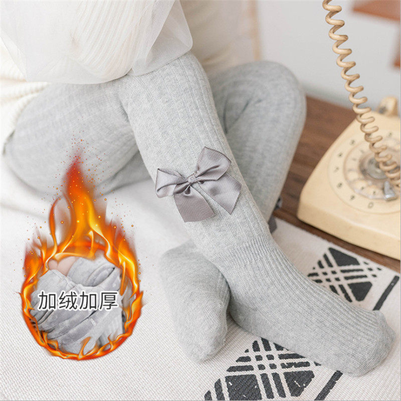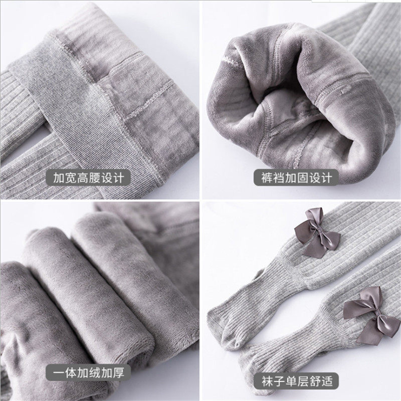 2020 New Girl Pants Socks Autumn Winter Plus Suede Thickened Butterfly Knot Baby Girl Warm Inner Hitch Socks