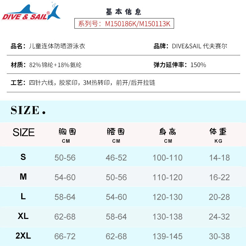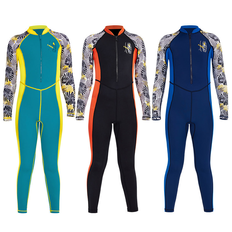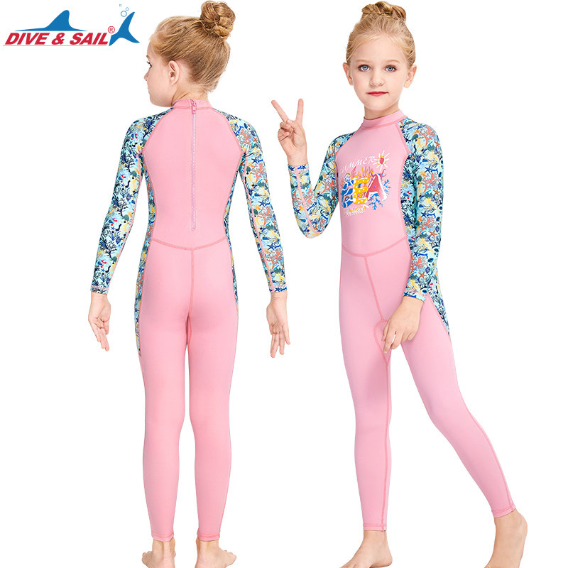 DIVE&SAIL children's swimsuits, girls' and boys' one-piece long sleeves, medium and large children's sun protection quick drying swimsuits, diving suits