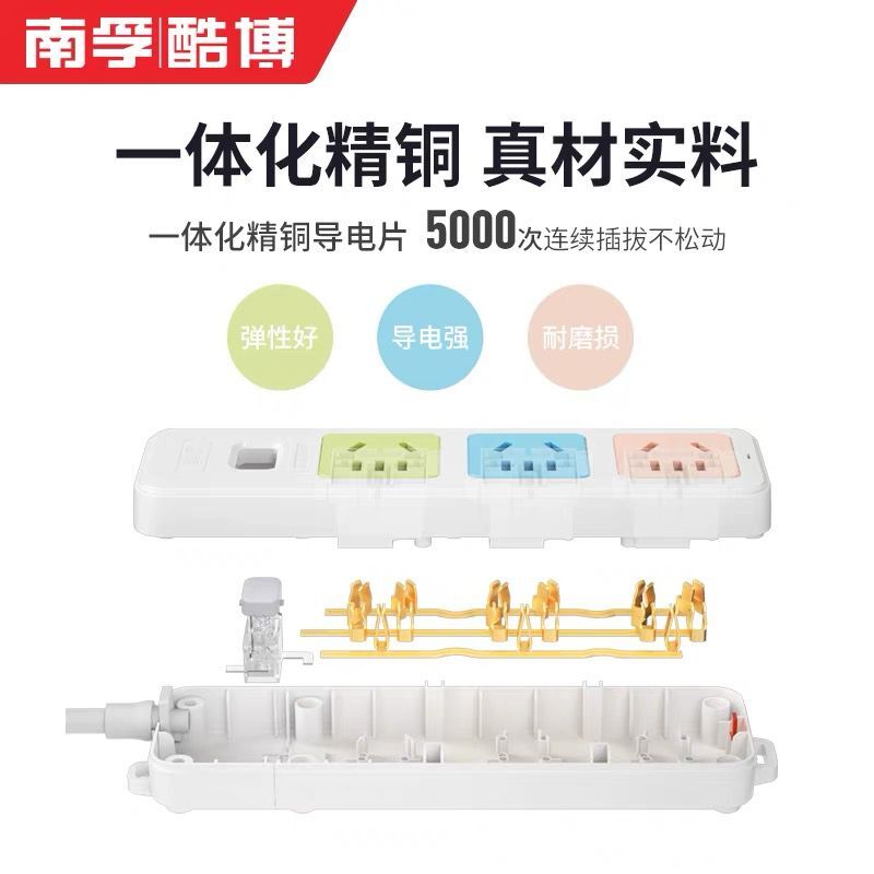 Nanfu row plug Nanfu new national standard socket wiring board 1 8 meters 3 holes 4 holes 6 holes converter