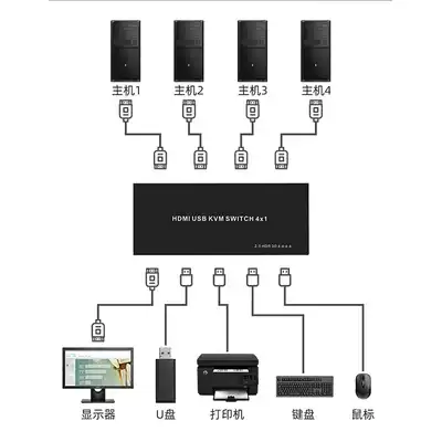 ENET time HDMI KVM switcher 4 in 1 out multi-computer monitoring host shared mouse Keyboard Monitor printer U disk distributor HD 4k60Hz 1 point 4 one tow four send