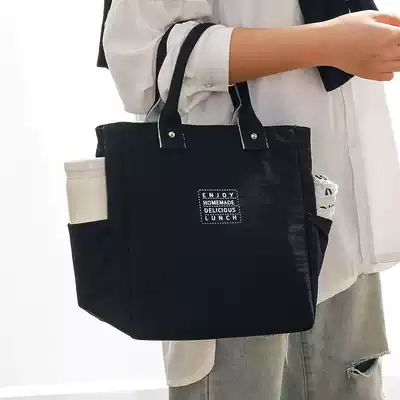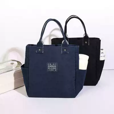 With water cup level insulated bento box bag zipper portable thick waterproof aluminum foil lunch bag office worker with rice bag