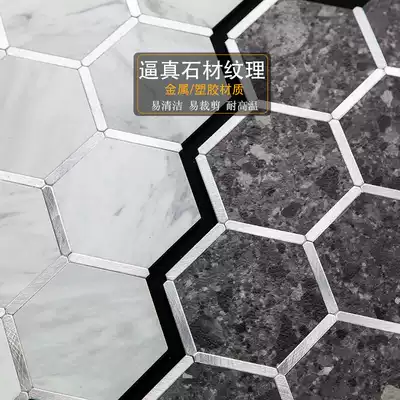 Hexagon brick mosaic creative metal modern living room marble kitchen atmospheric TV wall stickers self-adhesive