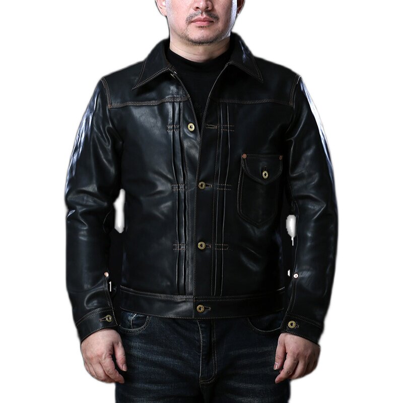 Muppi jersey male turnover short section Body Youth Day Ensemble Retro Real Leather Jacket Locomotive's Brakes Jacket Tide