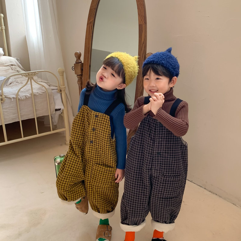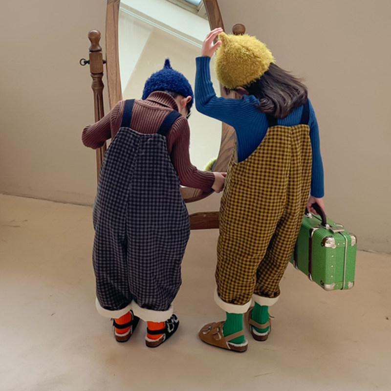 Boy 2021 Winter Light Core Suede Plus Cotton Cuddling Bag Pants Woman Thickened Sen Warm Plaid with Broad Leg Pants