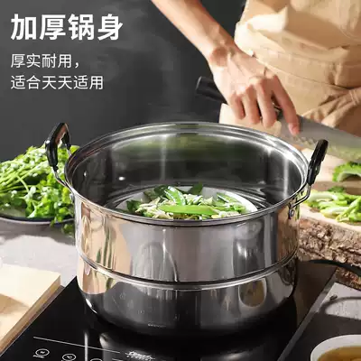 Thickened stainless steel steamer household large capacity 2-layer steamer large steamer buns induction cooker gas stove Universal