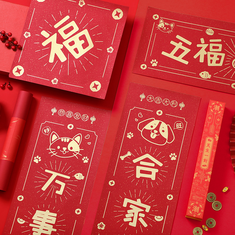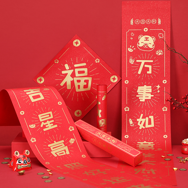 2022 Tiger Year Cute Creative Spring Couplets Spring Festival Home Chinese New Year's doors to the New Year's Gate Fucalligraphy Gate with a big gift package