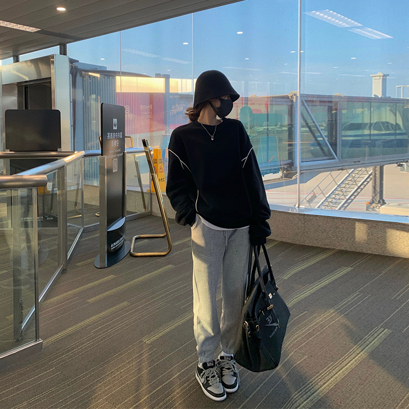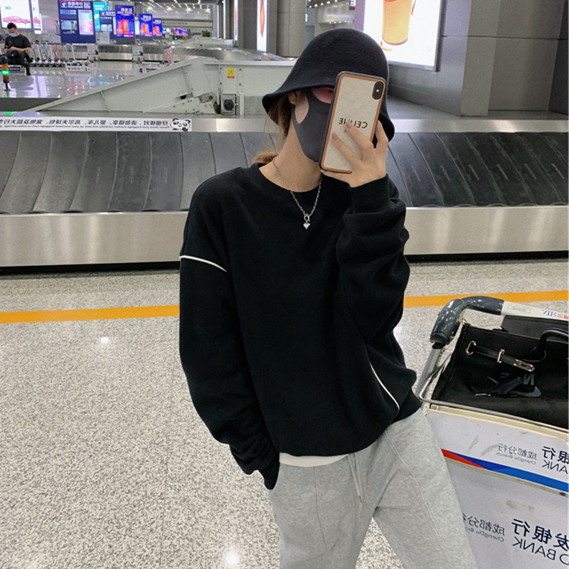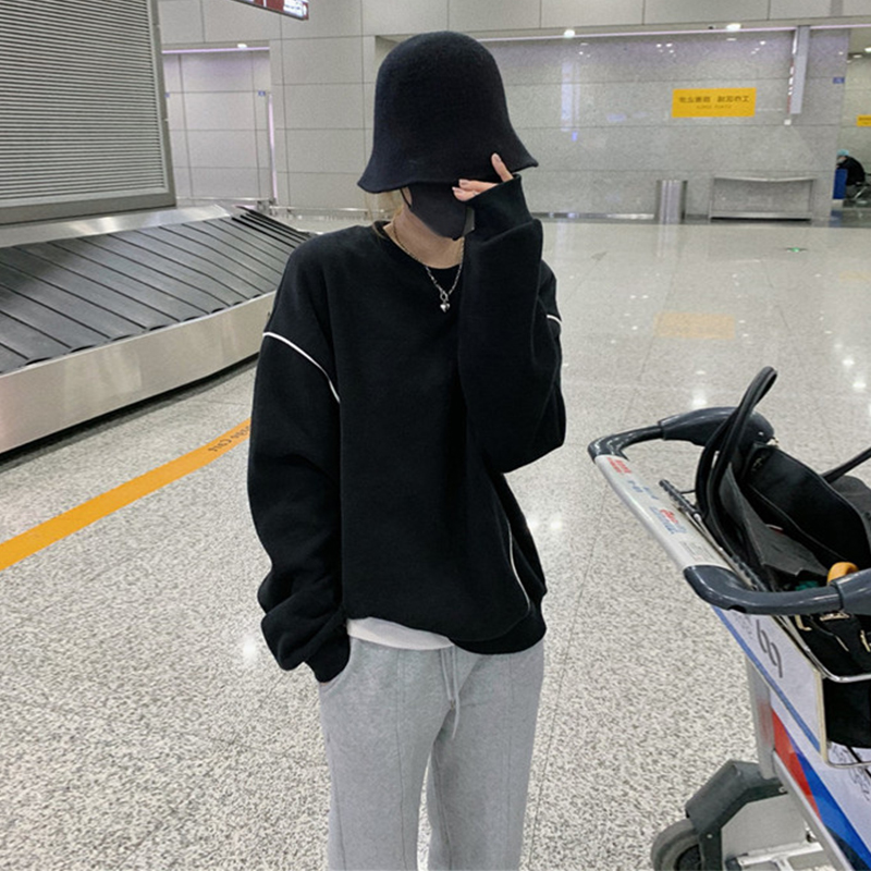 2022 early autumn new American vintage loose casual top trendy ins black high-end sweater women's autumn