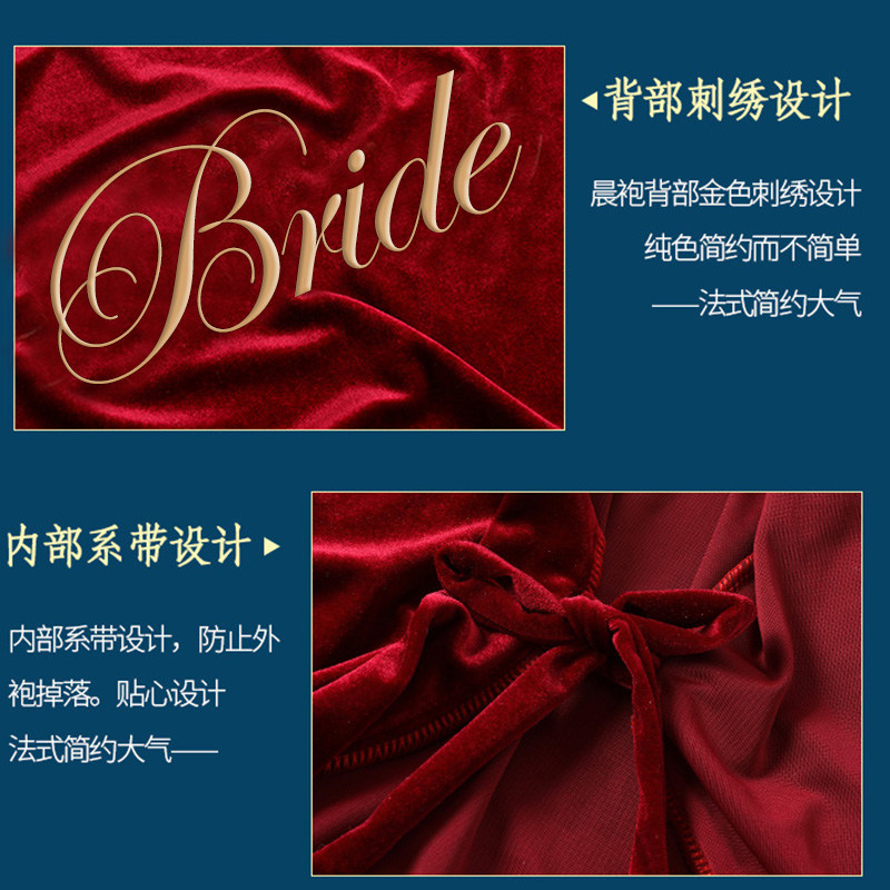 Morning robe bride bride bride wedding plus velvet wedding mate handdress red dressing gown long winter