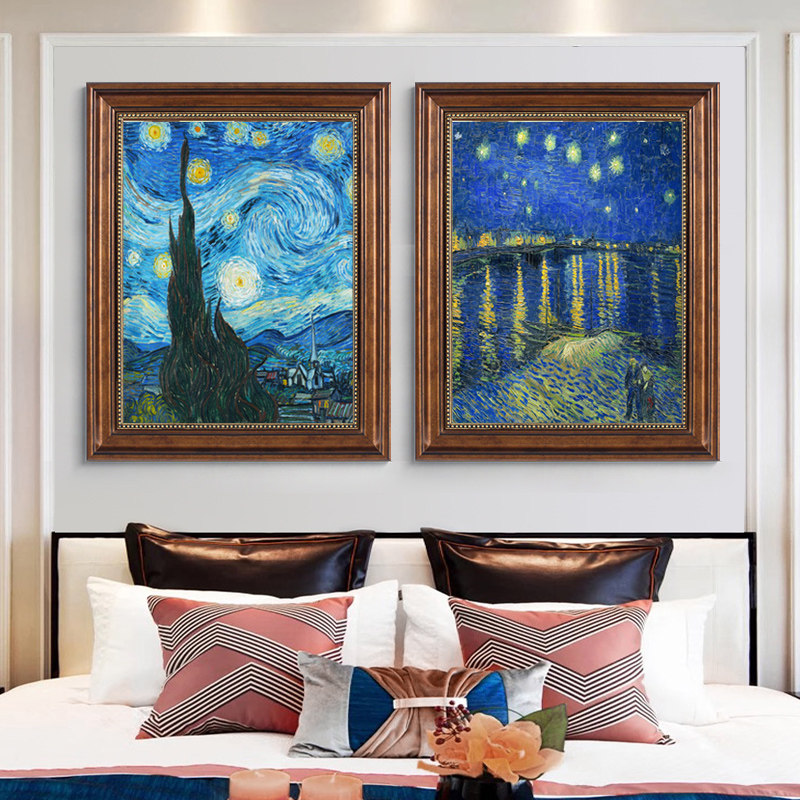 Van Gogh Star Decoration Painting European oil painting living room dining room world famous painting Xuanguan corridor vertical version of the background wall hanging painting