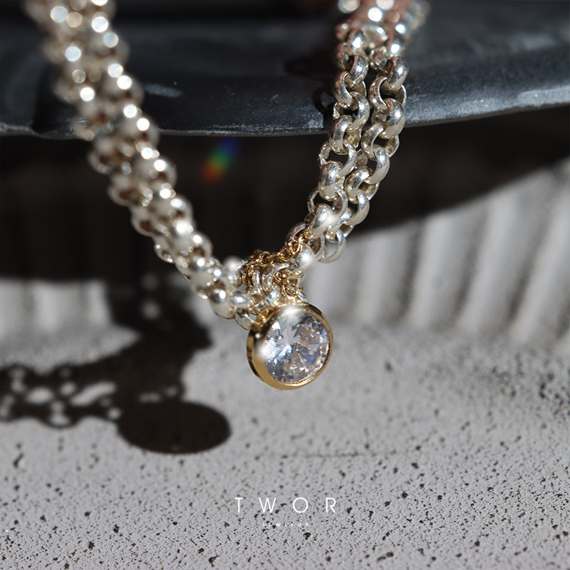 TWOR Rhine series original s925 silver double-layer zircon pendant clavicle chain Simple high-end necklace Autumn and winter