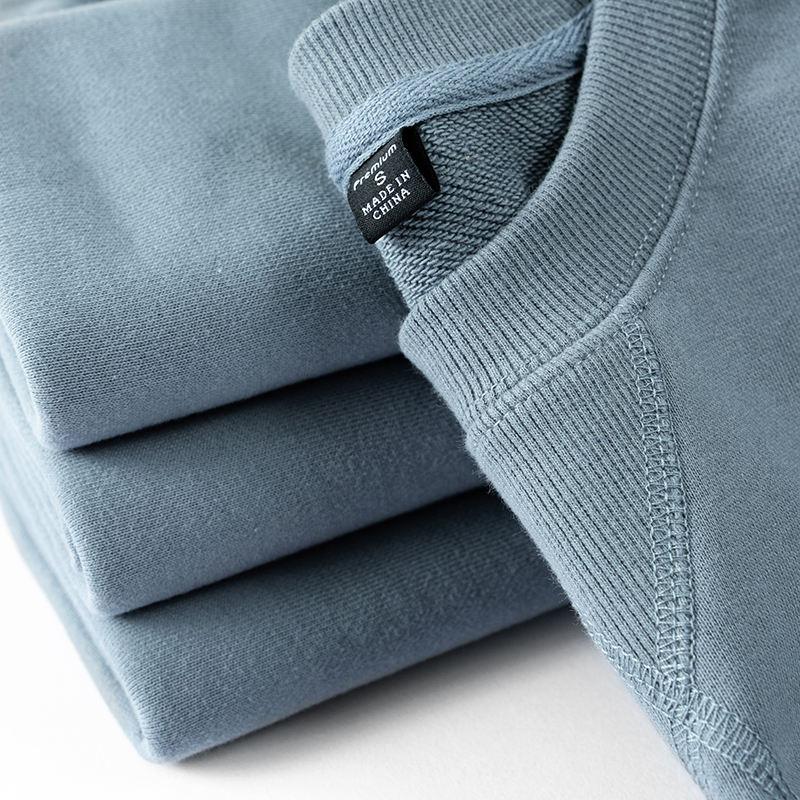 340g HEAVY POUND FOGGY BLUE HAIR RING CLOTH PURE COTTON LOOSE ROUND COLLAR SLEEVE HEAD THICK COTTON T PURE COLOR CASUAL MINIMALIST FOR MEN AND WOMEN BLOUSES