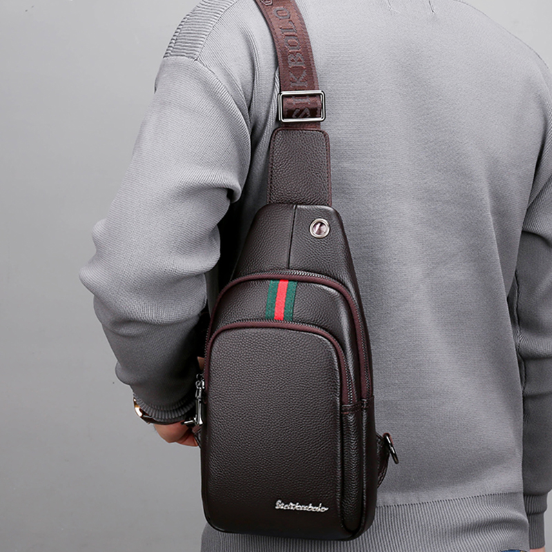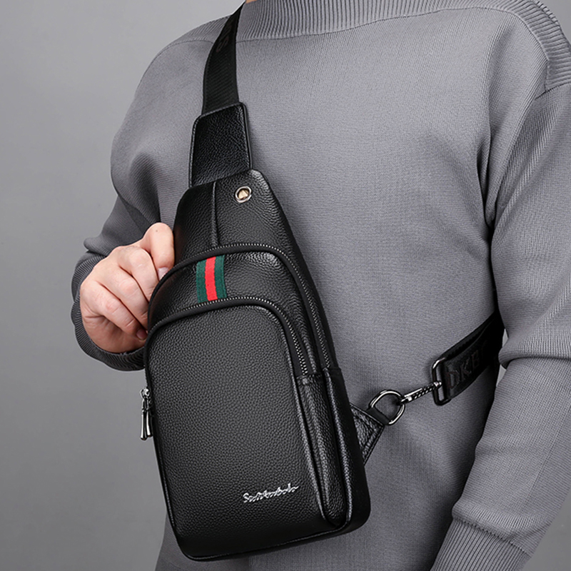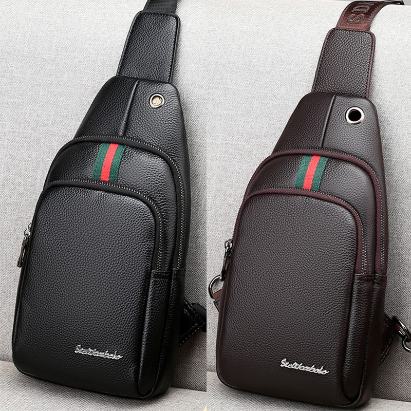 Chest bag men's genuine leather bag men's messenger bag first layer cowhide shoulder bag large capacity chest backpack casual cross-body bag men