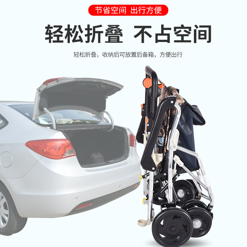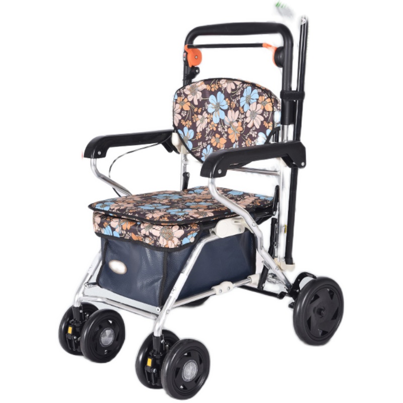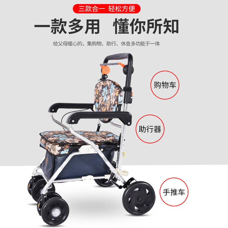 The elderly trolley can sit and push the elderly shopping cart to buy vegetables Small pull car seat cushion chair folding walker four-wheeled adult scooter