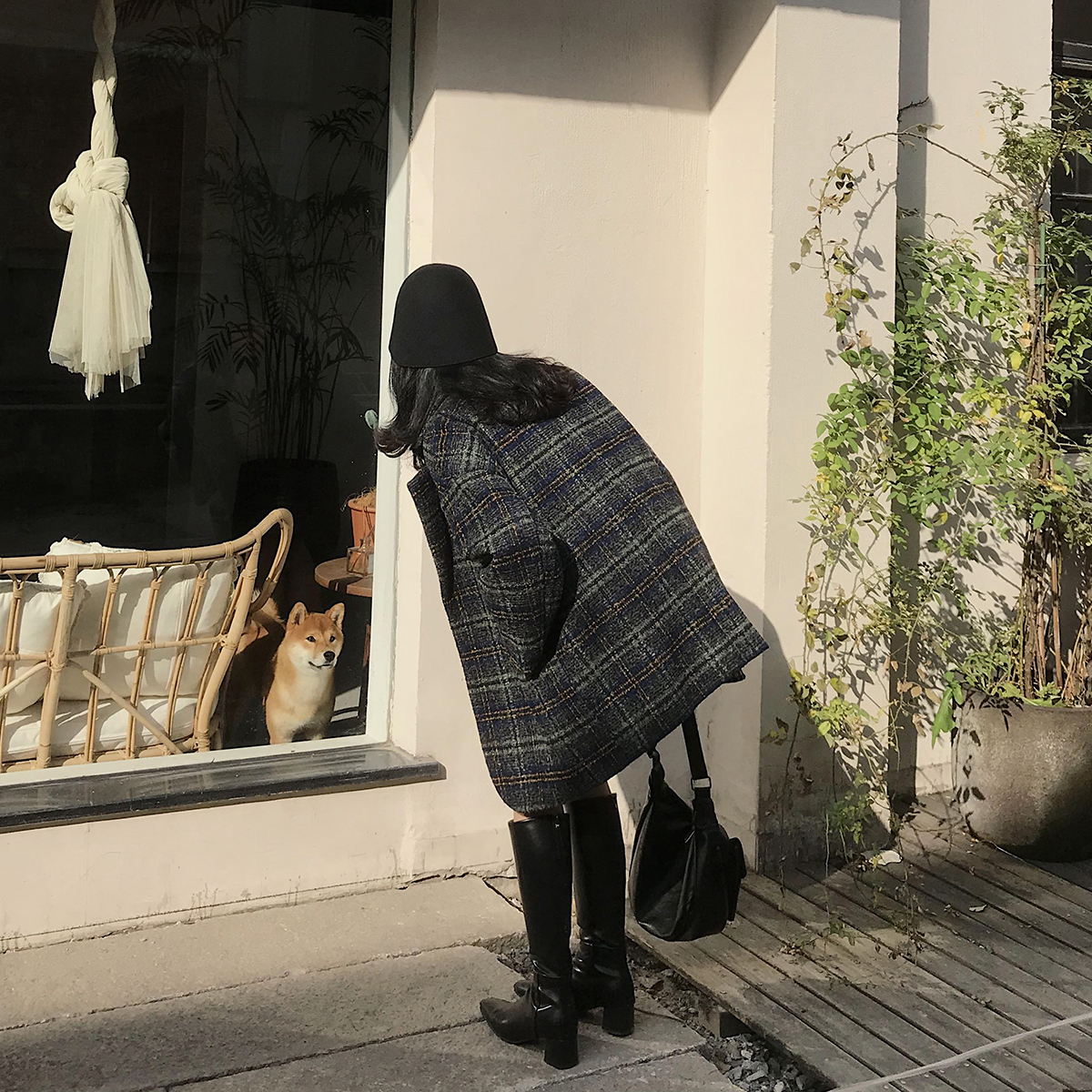 ASZY Plaid Thickened Cotton Wool Small Suit Jacket Women's Fall/Winter Korean Short Small English Style Korea