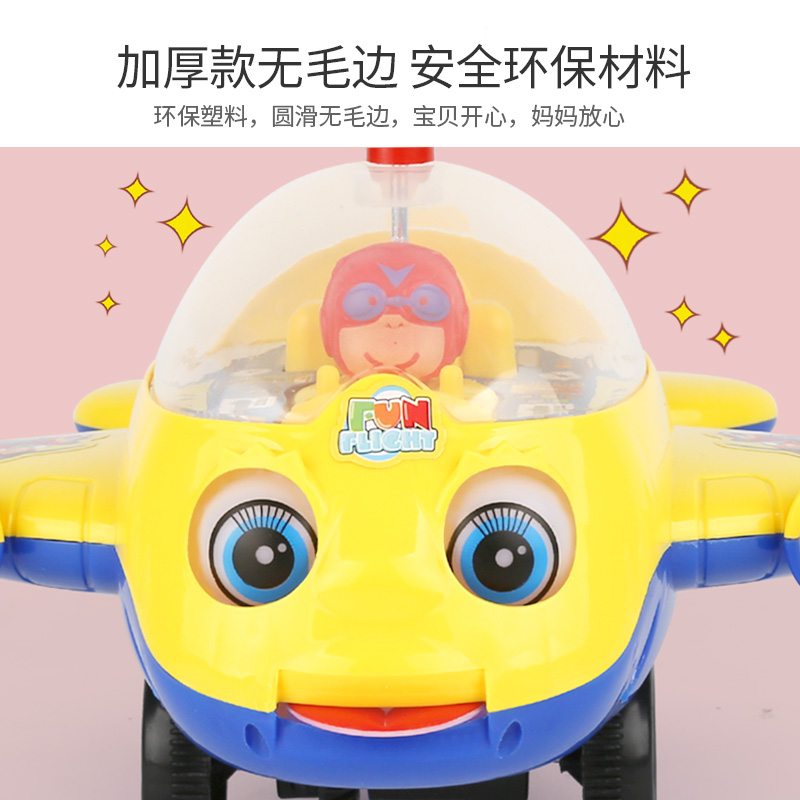 Children's toddler hand push airplane toy push wheel wheel push push music single pole toddler walking belt bell boy girl