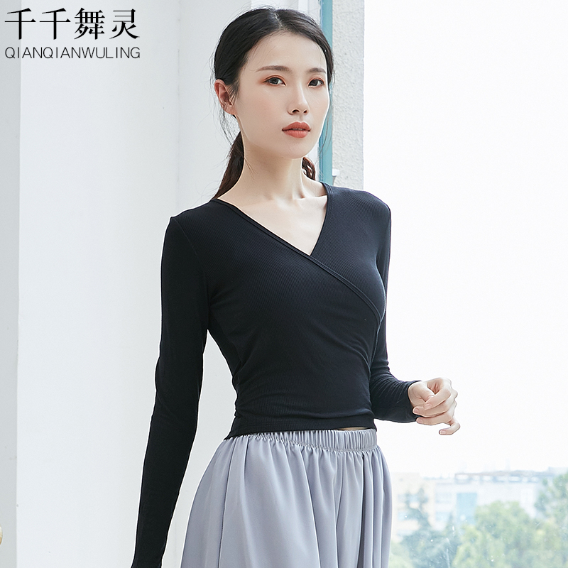 Dance Suit Martial Arts Women Blouse V Collar Modern Dance Long Sleeve Latin Black Classical Dance Body Art Performance Suit