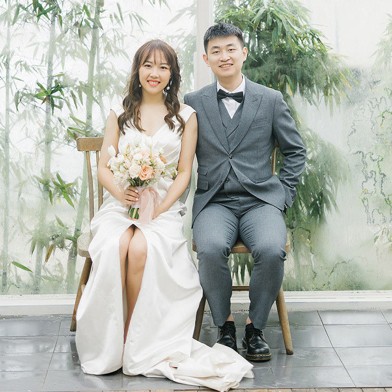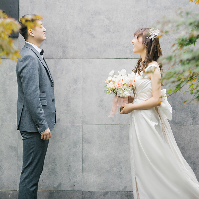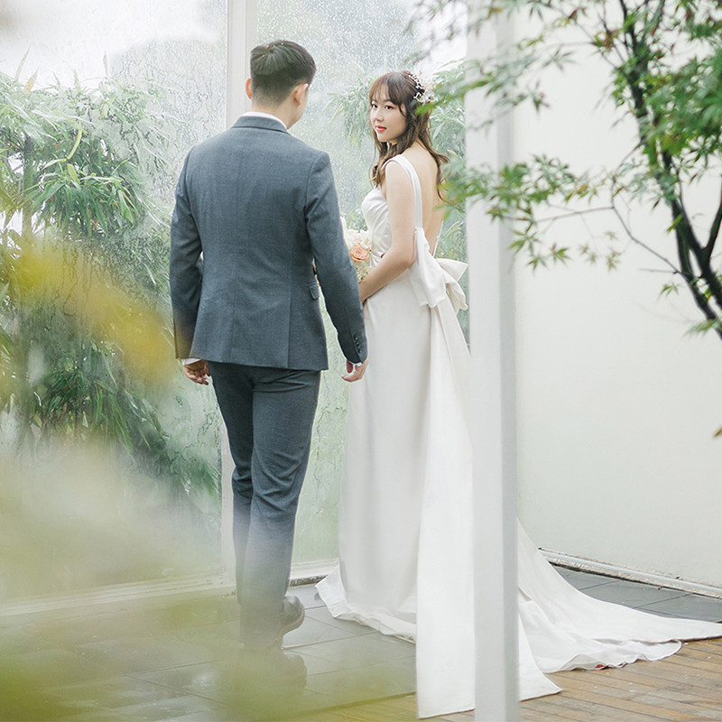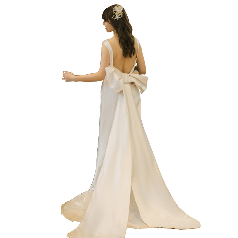 Satin wedding dress 2021 new bride white V-neck is simple and thin