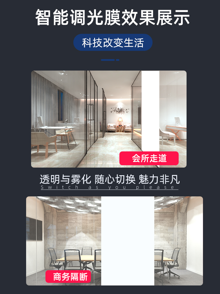 Intelligent dimming glass film office partition atomization glass film home discoloration electric control dimming film liquid crystal electrifying film
