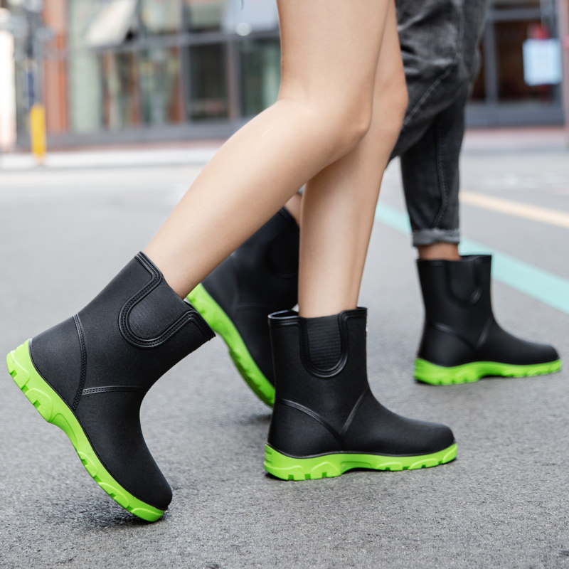 Spring Autumn Fashion Rain Shoes Women Anti Slip Middle Cylinder Water Shoes Men's Water Boots High Cylinder Rain Boots Carwash Buy Vegetable Kitchen Shoes Glue Shoes