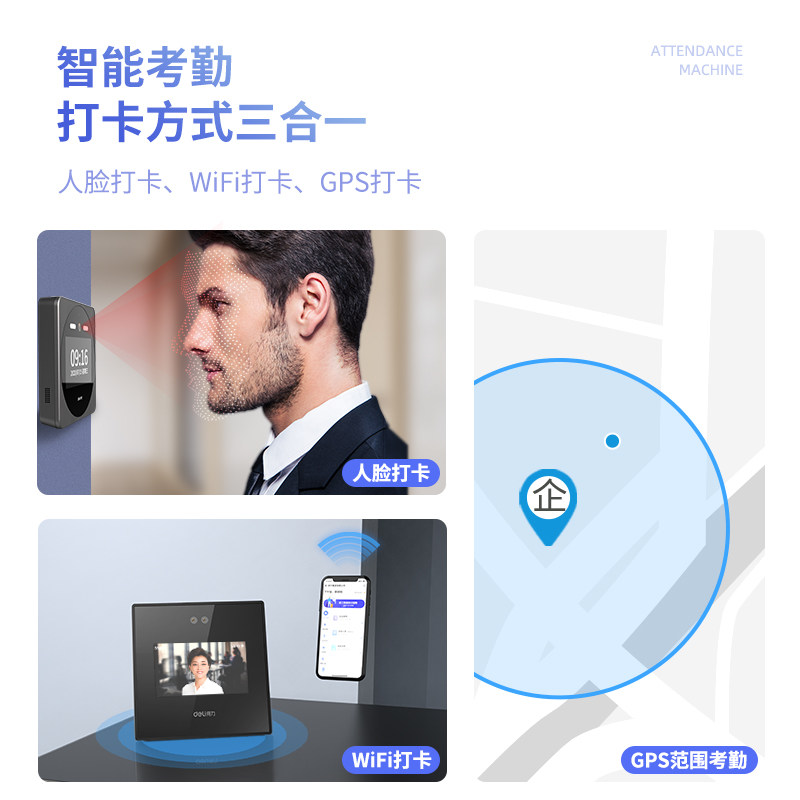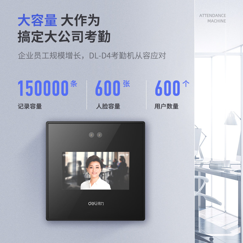 (New product debut) Deli face recognition attendance machine D4 facial recognition punch card machine dynamic cloud intelligent face all-in-one machine employee commuting brush face check-in mobile phone wifi cloud attendance