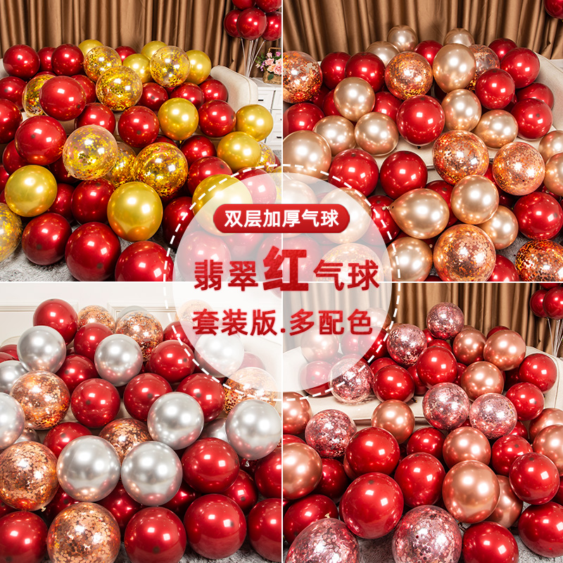 Wedding red pomegranate balloon thickened explosion-proof wedding room decoration Wedding wedding scene decoration double-layer net red balloon