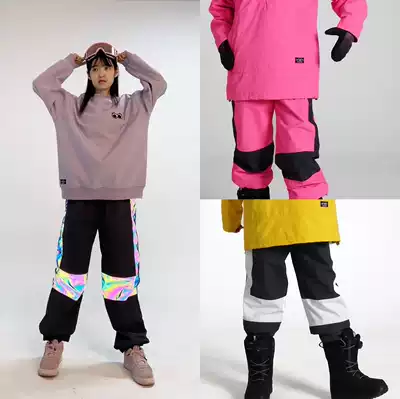 Snowboard pants splicing color Korean version of fluorescent powder waterproof windproof men and women couples