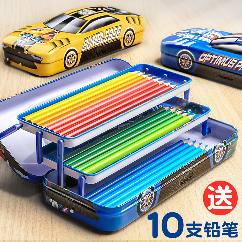 Automatic guy pencil boy stationery multilayer pen case female elementary school boy Moral iron car 1st grade iron case diamond iron case triple sheet metal multifunctional nursery deformed child
