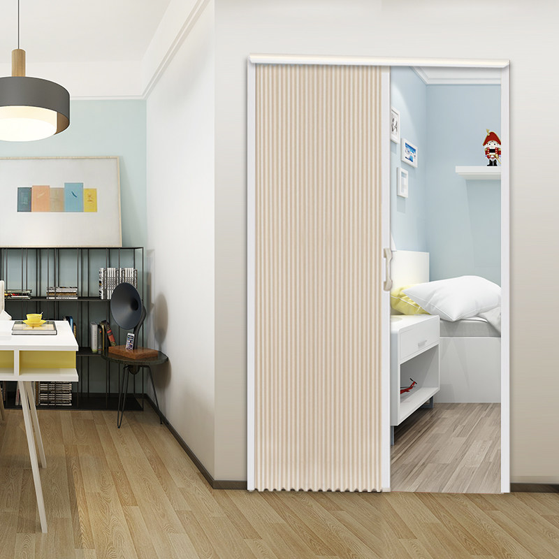 Japanese style folding door sliding door interior partition open kitchen living room invisible no lower rail PVC bathroom door