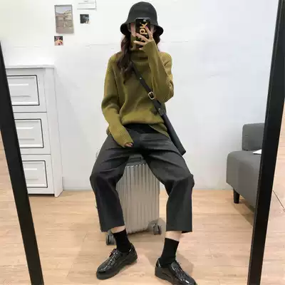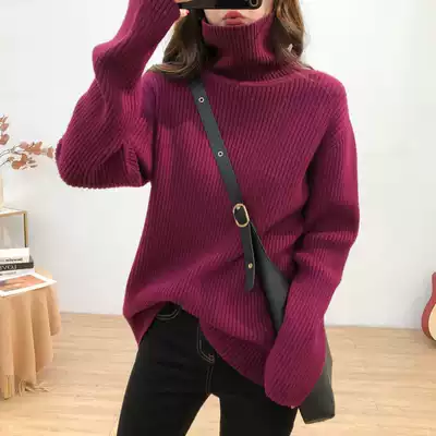 Pink turtleneck sweater women's autumn and winter pit strip retro simple lazy loose pullover bottoming sweater Western style top