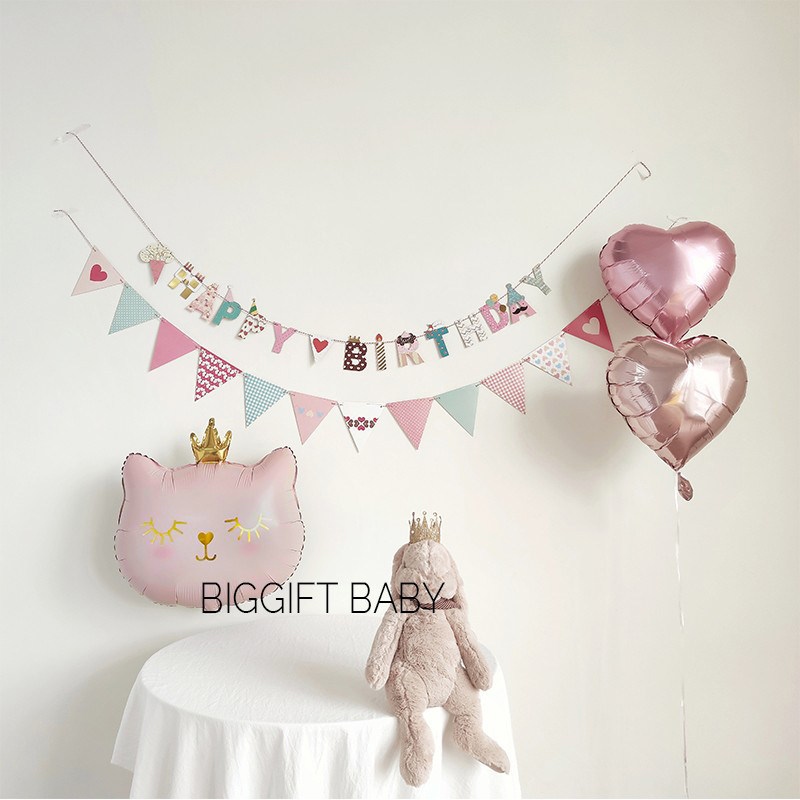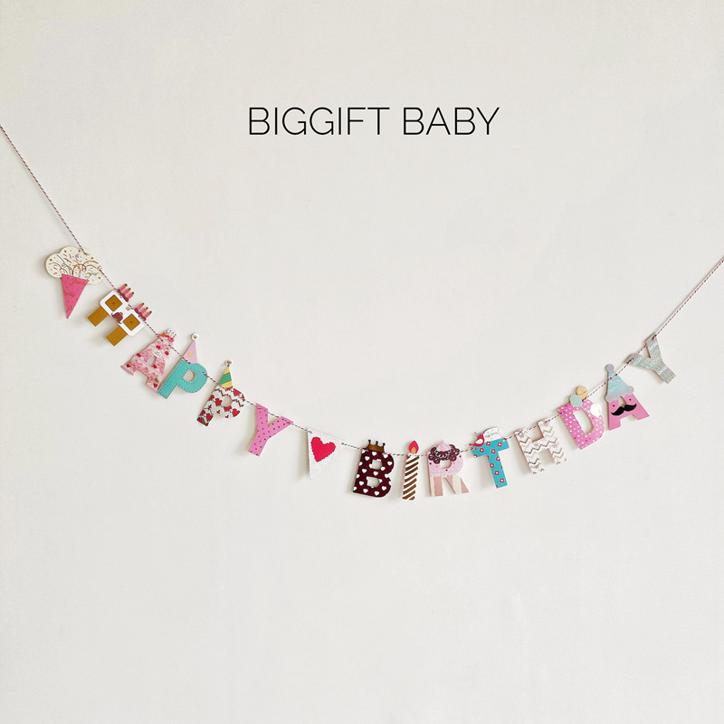 BIGGIFT BABY~Han Dear Cartoon Children's Baby Birthday Letter Pull Flag Wall Party Decoration