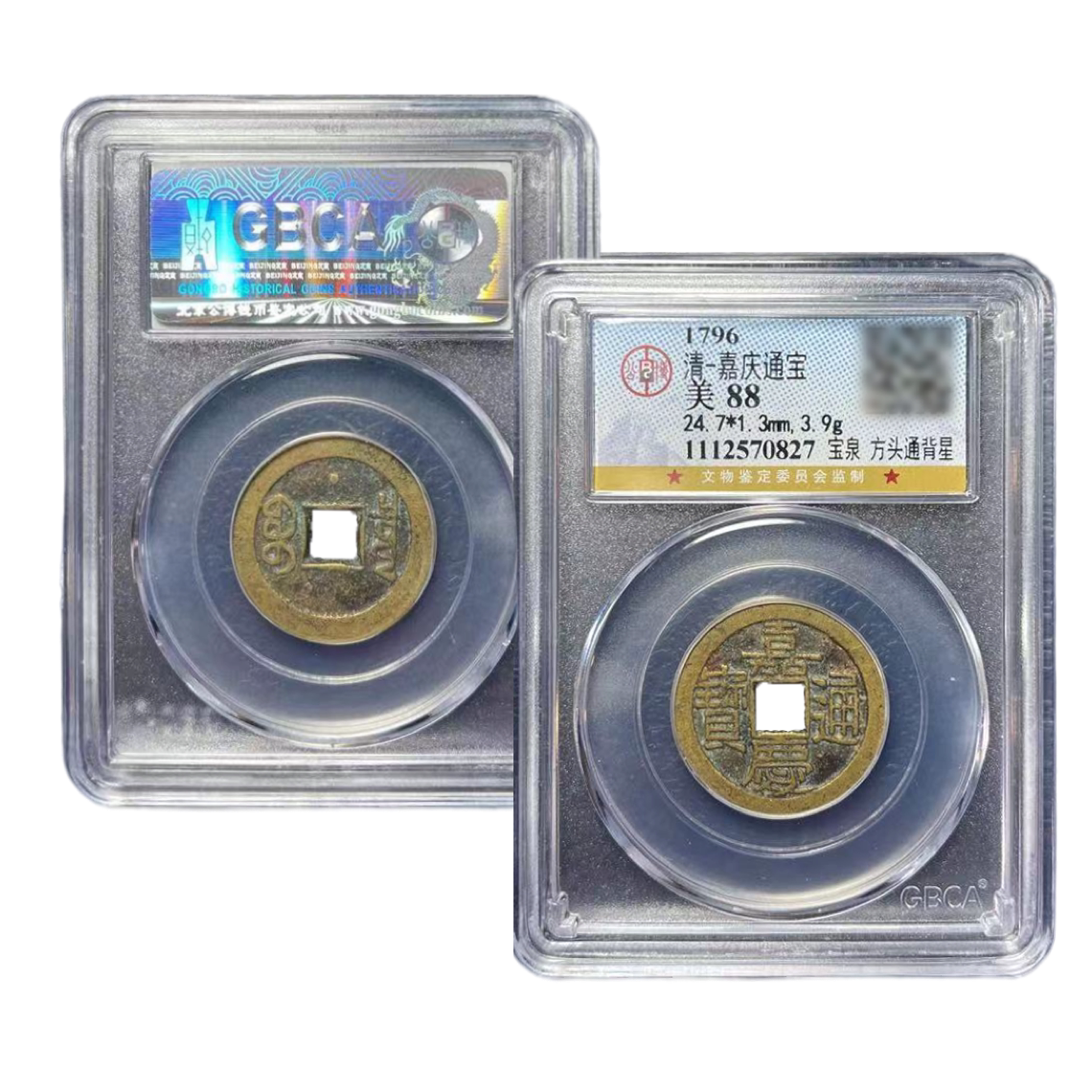 Qingdai Genuine Products Five Emperors Money Mother Money Jiaqing Tong Baby Spring Large Sample 28 Brass Appraisal Certificate Public Bo Box Coins