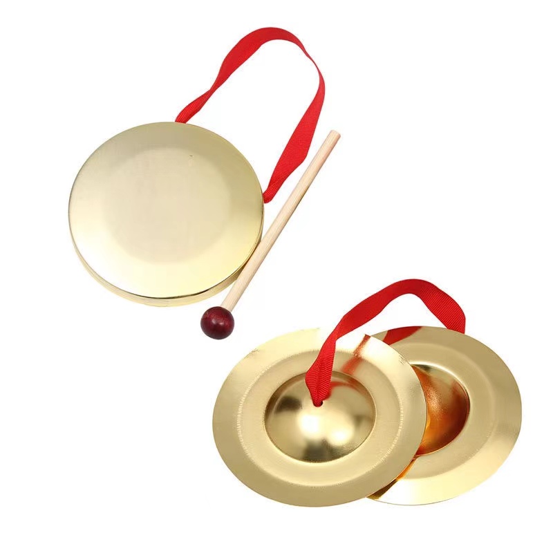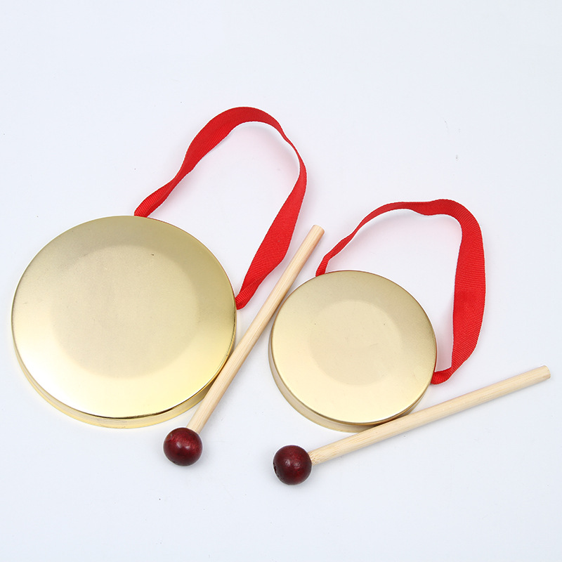 Small rub(3-4 years old) (9 cm alloy copper plated in diameter) large rub (12 cm diameter) iron alloy copper plated gong (12 cm diameter) iron alloy copper plated gong (3-4 years old) (diameter)