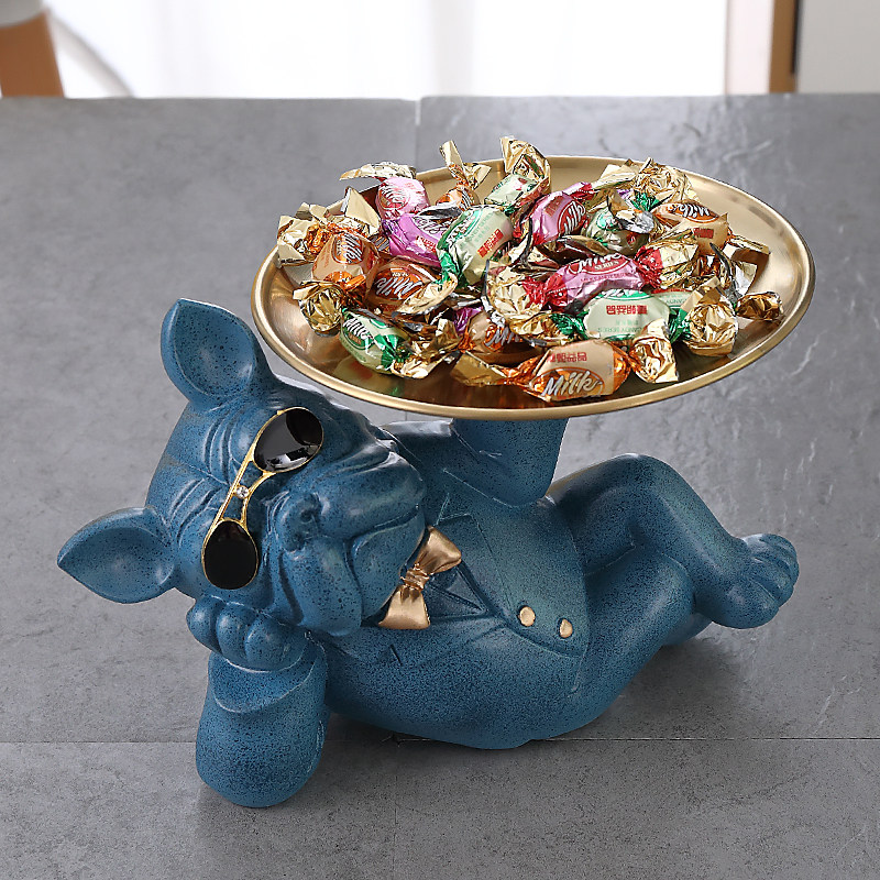 Bulldog dog storage decoration Nordic light luxury candy plate fruit plate snack fruit plate porch put key tray