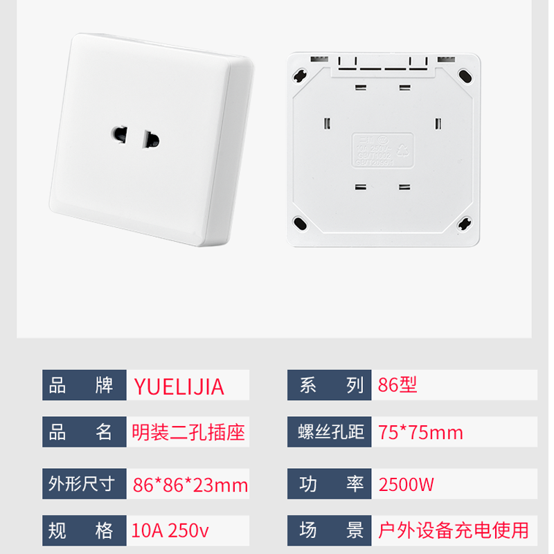Min Fit 2 Holes Socket 86 Type Charging Pile Waterproof Hood Special Electric Car Two Holes 10A Power Socket Two-Inserts
