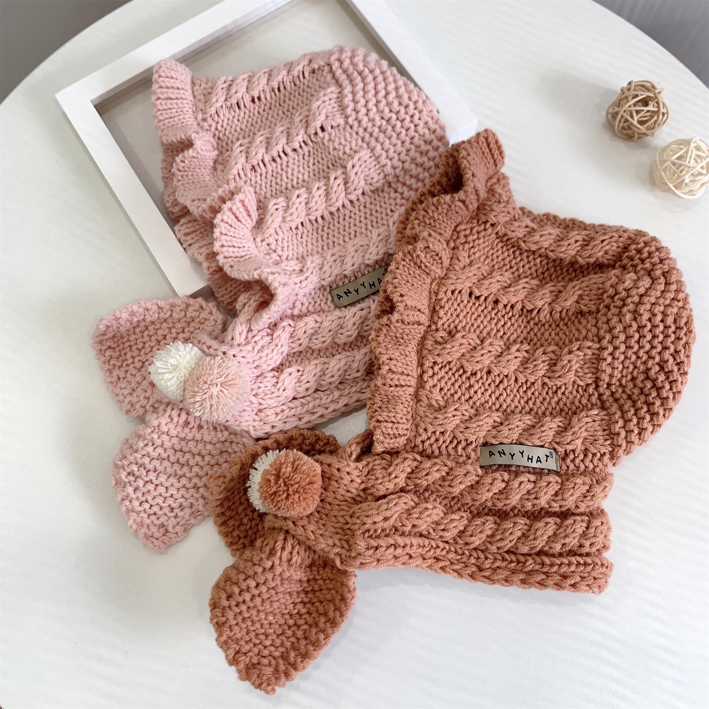 Baby autumn and winter warm suit hat scarf one hat newborn woolen hat shed head baby ear protection hat knitting