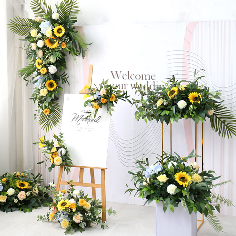 European-style wedding decoration will flower sunflower forest set stage row flower wall hanging silk flower props flower art